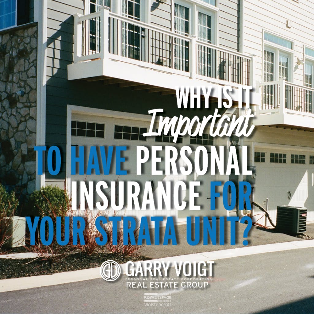 Strata Deductibles – your strata insurance will have deductible amounts, such as water damage. You need to be insured for these deductibles that are payable, they can range from $5,000 to $100,000. For example, if you live in a condo and you have a water leak that damages a unit below, you will be responsible for repairs and you need to be insured for this.